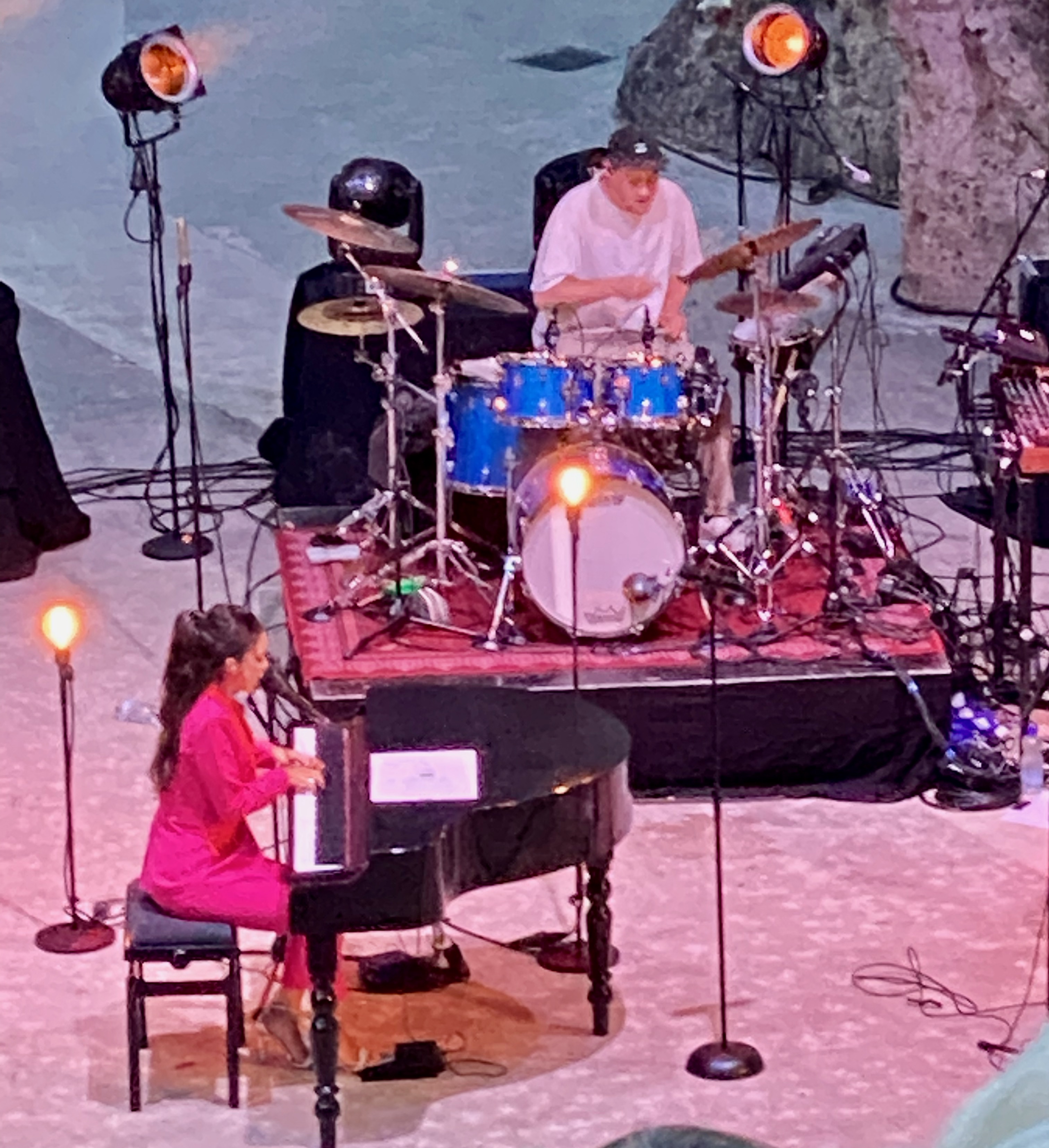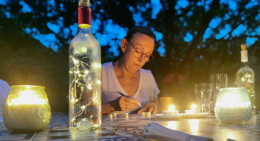 Ik verwachtte een avondmarkt met streekproducten maar dit is veel leuker. Als de zon onder is gaan de lampjes tussen de grote platanen aan en het is de perfecte zomeravond. Jong en oud, toeristen en locals; het is de perfecte mix zodat het aangenaam blijft. Persoonlijk heb ik een gruwelijke hekel aan evenementen waar toeristen de boel platlopen en geen lokale mensen te bekennen zijn. Gelukkig bestaat het hier nog want aan de Côte d’Azur, de mooiste streek van Frankrijk, is het toerisme dermate overvol dat er geen lol meer aan is. Om nog maar te zwijgen over de belachelijke prijzen die overal gerekend worden. Hier hebben we een heerlijke avond gegeten en gedronken met prijzen tussen 10 en 15 euro per persoon. Maar wel je eigen bestek meenemen.